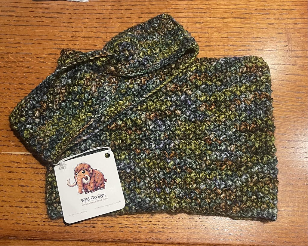 Nicole T Beautiful yarn to work with. So soft and once crocheted into the neck warmer has lots of movement and flow.